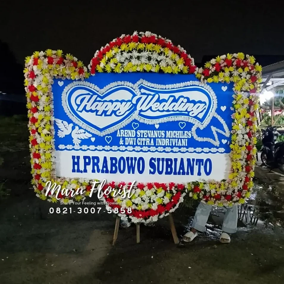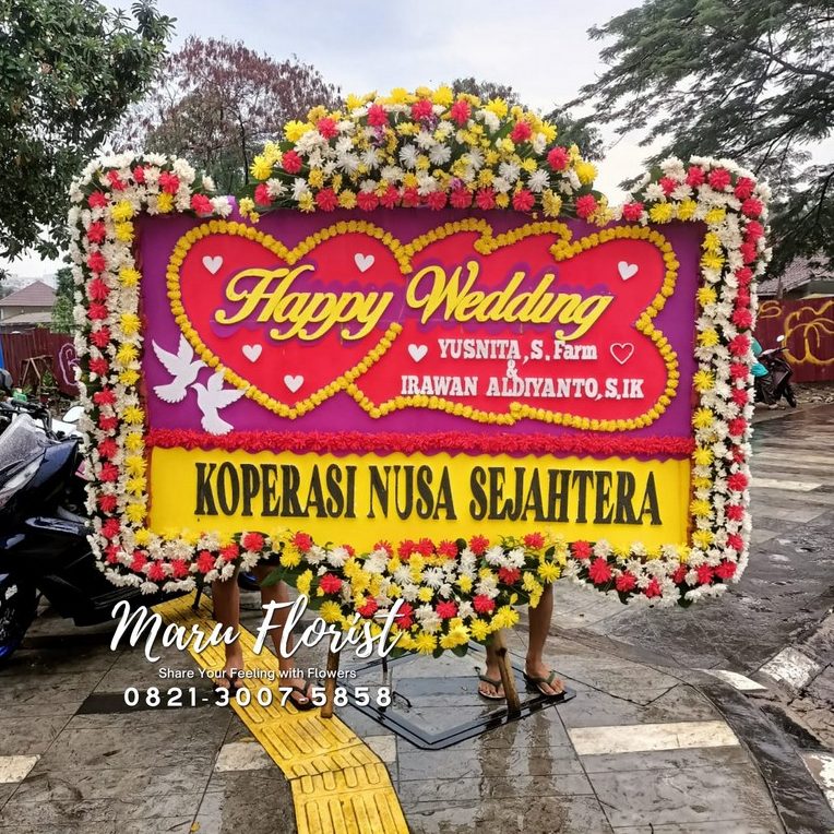 Karangan bunga pernikahan Bogor adalah cara terbaik untuk menyampaikan ucapan happy wedding secara berkelas dan berkesan. Cocok untuk diberikan kepada pasangan pengantin, keluarga mempelai, atau relasi bisnis yang sedang merayakan hari bahagia mereka.