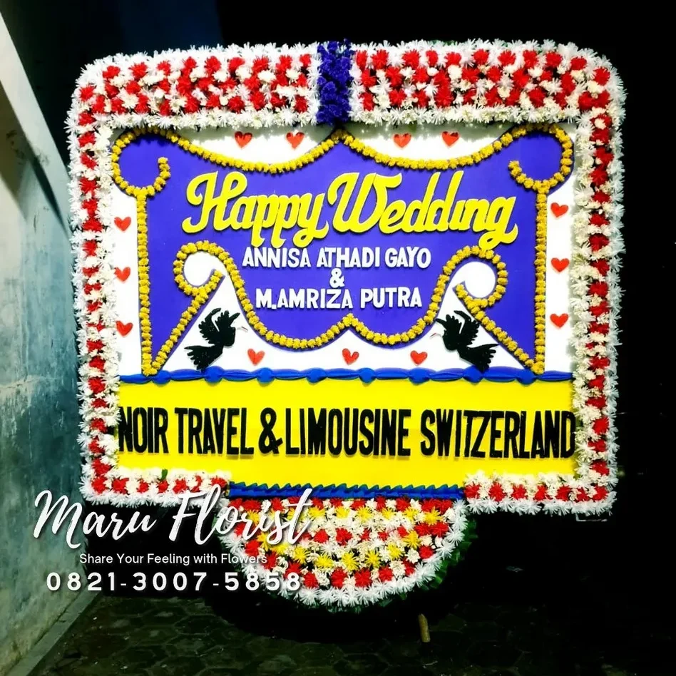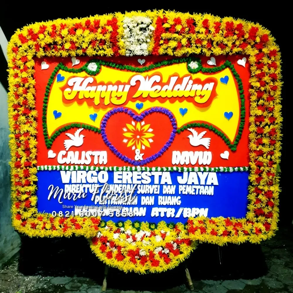 Sampaikan ucapan “Happy Wedding” Anda dengan cara yang indah dan berkelas melalui karangan bunga dari Maru Florist.