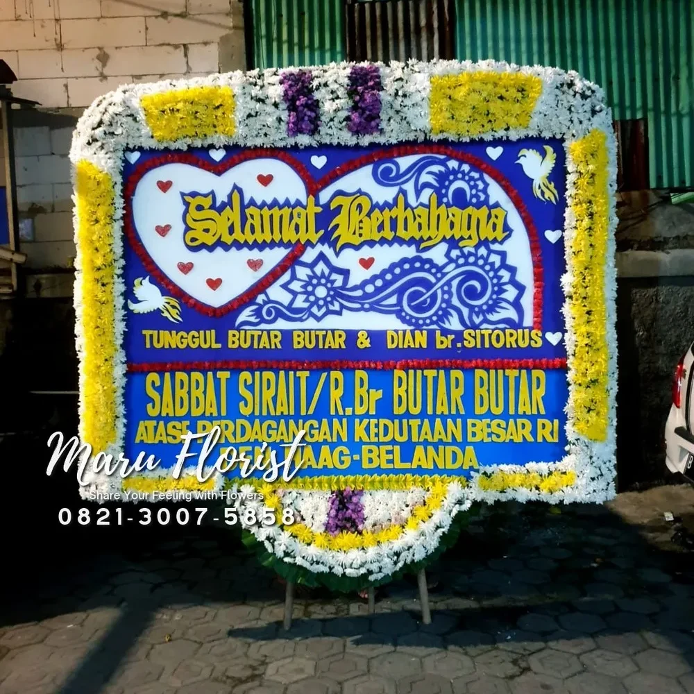 Sebagai penyedia bunga papan Jakarta yang berpengalaman, Maru Florist memastikan setiap pesanan dikerjakan dengan detail dan dikirim tepat waktu ke lokasi resepsi, gedung pernikahan, atau rumah keluarga mempelai.