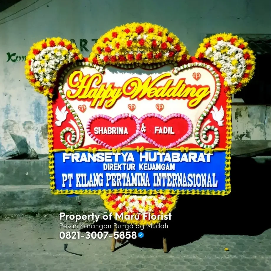 Sebagai penyedia bunga papan Jakarta yang berpengalaman, Maru Florist memastikan setiap pesanan dikerjakan dengan detail dan dikirim tepat waktu ke lokasi resepsi, gedung pernikahan, atau rumah keluarga mempelai.