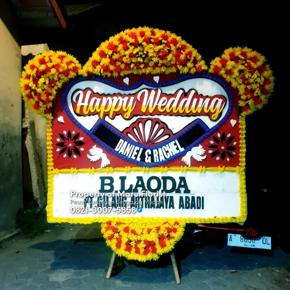 Sampaikan ucapan “Happy Wedding” Anda dengan cara yang indah dan berkelas melalui karangan bunga dari Maru Florist.