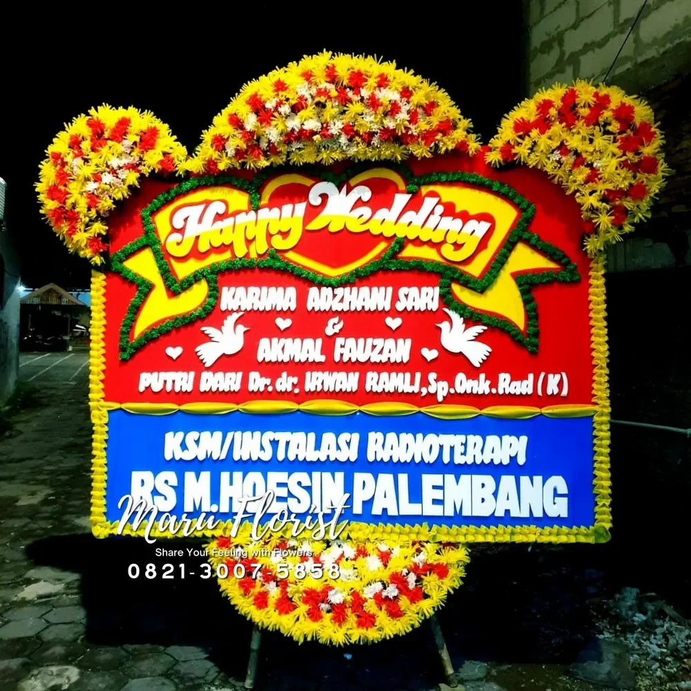 Setiap bunga papan kami dirancang dengan nuansa warna yang ceria dan penuh cinta—melambangkan harapan baik, kelanggengan, dan kebahagiaan dalam rumah tangga yang baru. Tata letak bunga dan tulisan disusun rapi, menciptakan kesan yang hangat sekaligus memukau di setiap sudut acara.